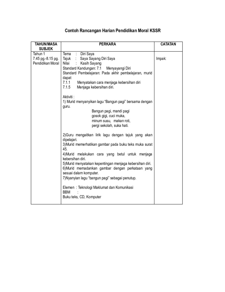 Contoh Rancangan Harian Pendidikan Moral Pdf